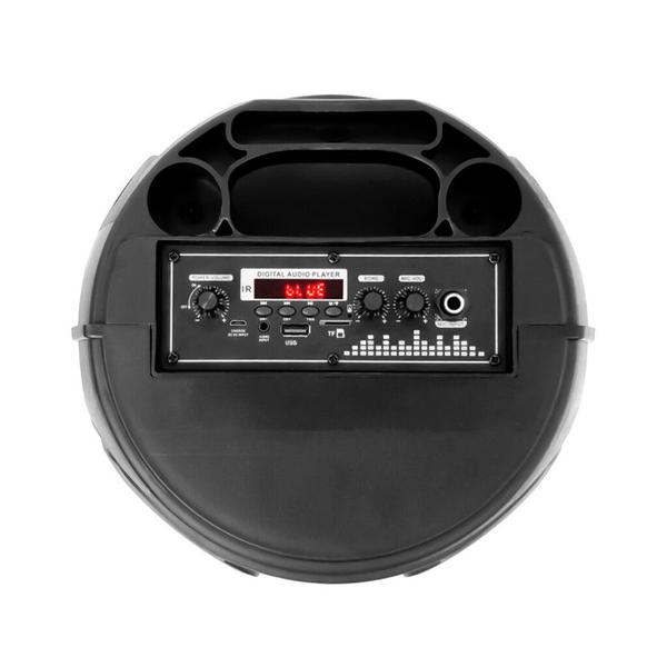 Este parlante de 8” con potencia de 10W es ideal para uso doméstico, reuniones pequeñas o karaoke en familia. Incluye micrófono con cable, control remoto y entradas TF, USB, AUX y MIC de 6,5 mm. Compacto y funcional, listo para acompañarte en cada ocasión.